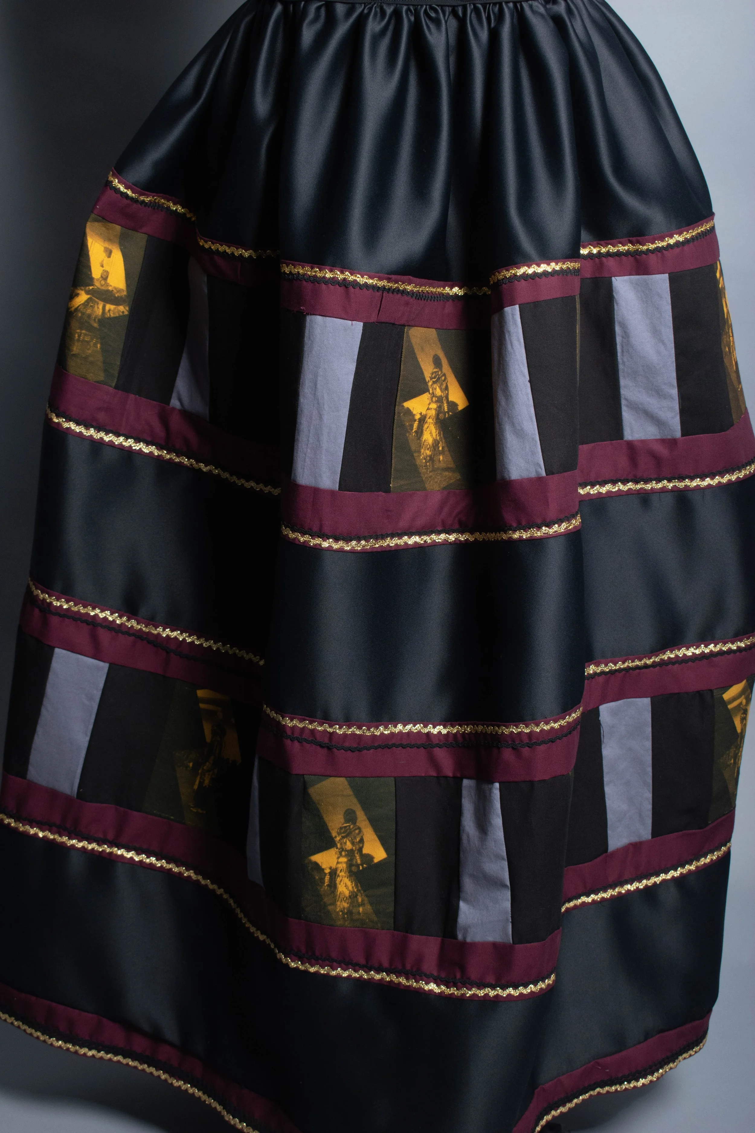 I began making my first patchwork skirt, something my tribe is known for. I placed my images within emulated designs producing them as cyanotypes that were then bleached and toned. This allowed me the flexibility to print them on fabric and manipulate them in any way I needed.